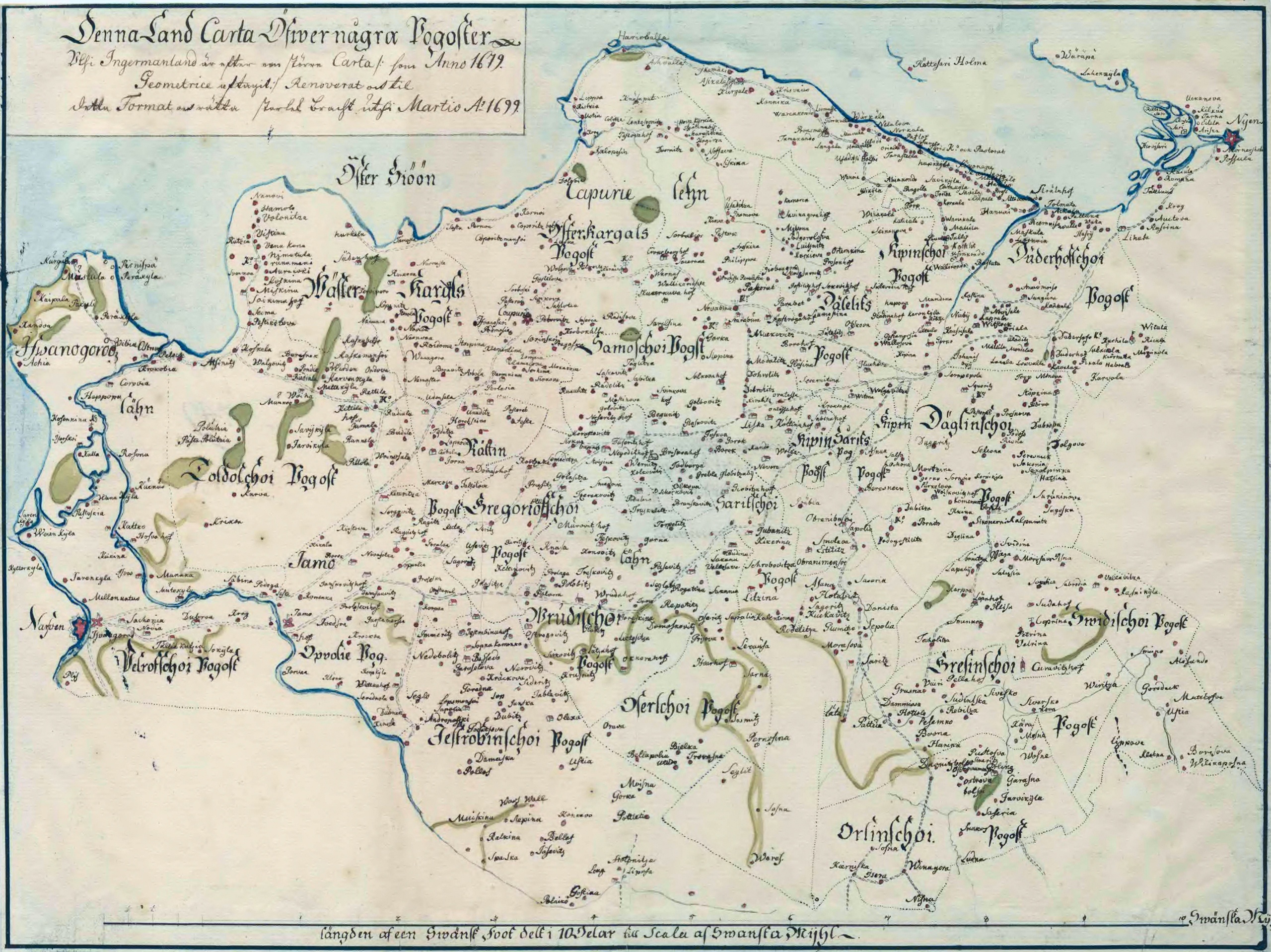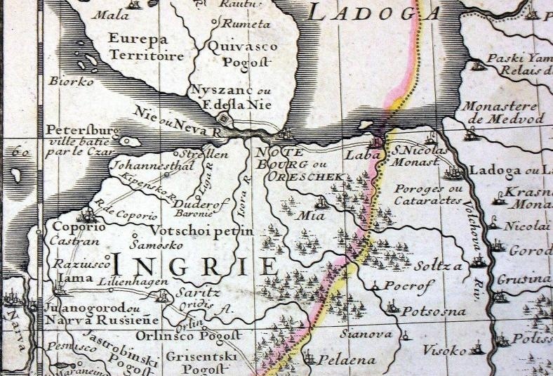 Текст Карта Ингерманландии 1679-1699 гг. Хорошо видны сотни населённых пунктов, включая Город на Неве с крепостью Ниеншанц 🏰 #Ингерманландия #географические_карты