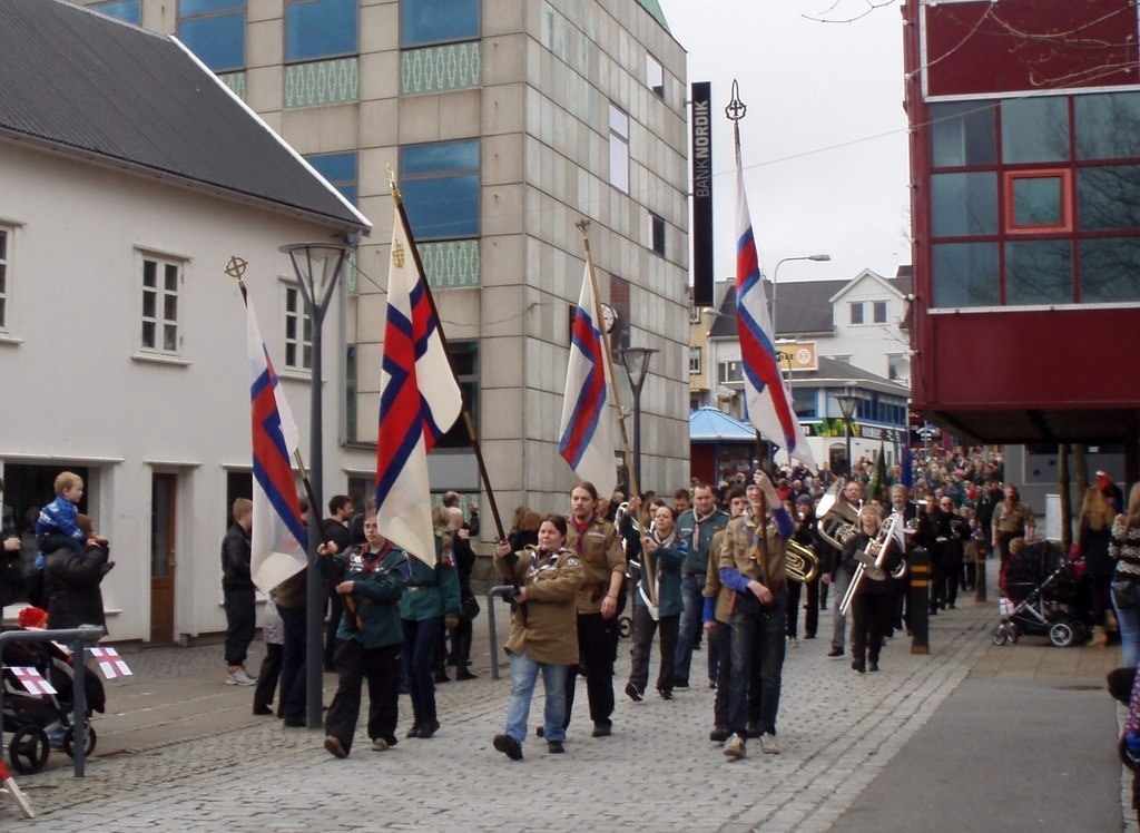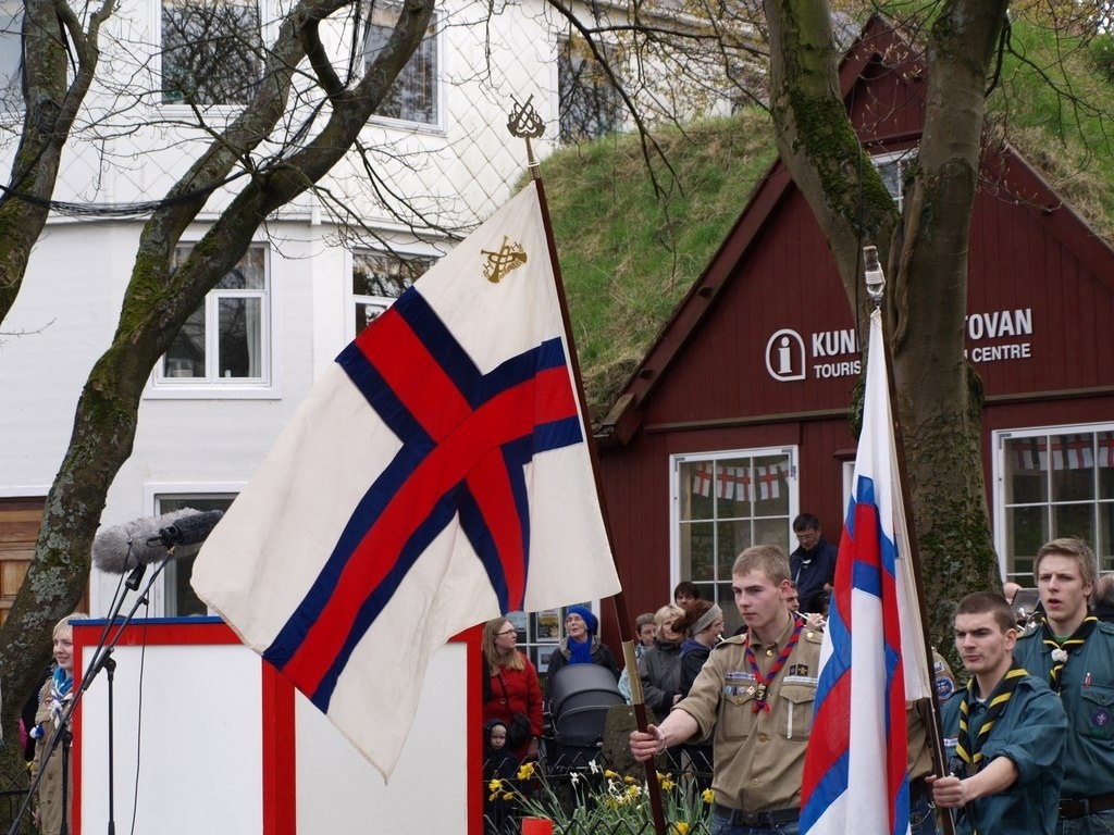 Текст 25 апреля — сегодня на Фарерских островах отмечают День флага (Flaggdagur)! Знамя Фарер, столь похожее на ингерманландское, и придумано было примерно в то же время — в апреле 1919 года. Автором флага стал студент-юрист Йенс Оливер Лисберг (Jens Oliver Lisberg, 1896-1920) и два его однокашника — Janus Øssursson и Pauli Dahl. Лисберг умер очень молодым из-за пневмонии, но увидеть своё детище как всенародный флаг он всё-таки успел: впервые Merkið, как любовно прозвали его фарерцы, был поднят 22 июня 1919 года в городке Фойин (Fámjin). Ныне тот флаг — первый в истории Фарер — уже почти век хранится в местной церкви (фото 8). От цветов датского флага фарерский отличает синяя кайма, которая подчёркивает, что Фарерские острова ранее входили в состав Норвегии. Интересно, что сине-бело-красное сочетание цветов совпадает не только со знаменем соседней Великобритании, но и с традиционными славянскими цветами, которые можно увидеть на флагах многих стран Восточной Европы. В апреле 1940 года Данию оккупировали войска Рейха. Однако до Фарер они не добрались — и острова временно перешли под военное управление британцев. 25 апреля 1940 года, 82 года назад, Merkið официально стали вывешивать на местных судах, а уже после войны, в 1948-м, флаг стал знаменем Фарер и de jure. #Европа #Скандинавия #соседи #регионализм #история #даты