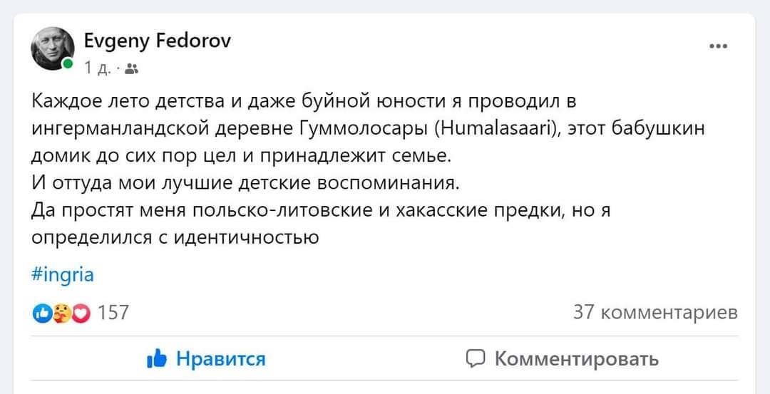 Текст Женя Фёдоров за Ингрию. Лидер культовой группы [club6449|Tequilajaззз] признался, что его главная идентичность — ингерманландская. Всё больше знаменитостей из Петербурга за последние 1,5 года говорят о выборе Ингрии: так, она стала темой работ мультипликатора Олега Куваева и рэпера Оксимирона. #Ингерманландия #Ingria #Tequilajazzz