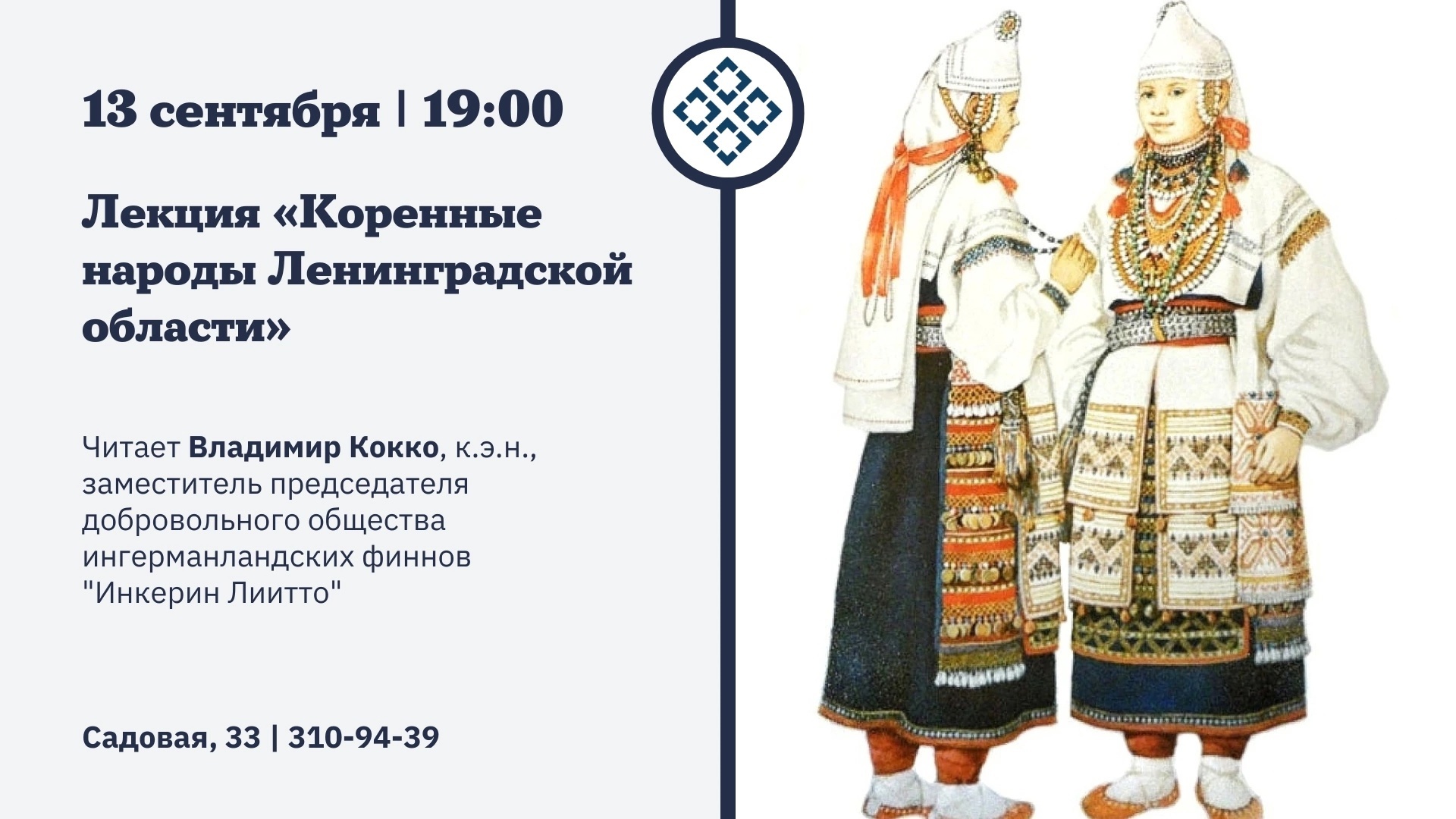 Текст 13 сентября (СР) в 19:00 в [club136188233|Библиотеке национальных литератур] (Садовая, 33) состоится открытая лекция [id548838603|Владимира Кокко] о коренных народах Ингрии. Если вы давно хотели разобраться, кто такие весь, водь, инкери и ижора, добро пожаловать! 🤗 #Ингерманландия #Ингрия #история #анонс