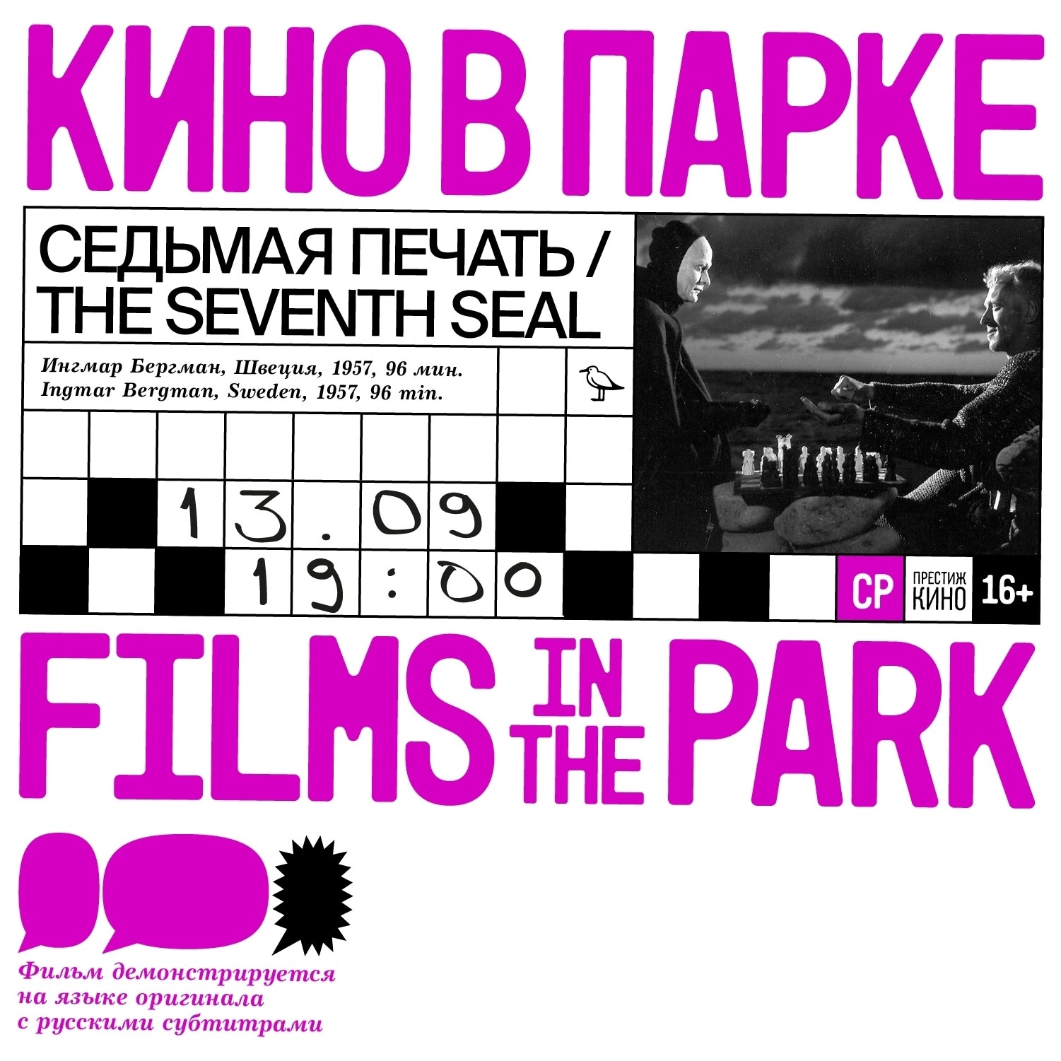 Текст 🇸🇪 13 сентября (СР) в 19:00 в [club28625572|Новой Голландии] покажут культовую картину Ингмара Бергмана "Седьмая печать". Легендарная сага о Рыцаре, который бросил вызов самой Смерти, демонстрируется на языке оригинала с русскими субтитрами. Показ состоится на открытом воздухе — берите пенки и одевайтесь по погоде. #Ингерманландия #Ингрия #IngmarBergman
