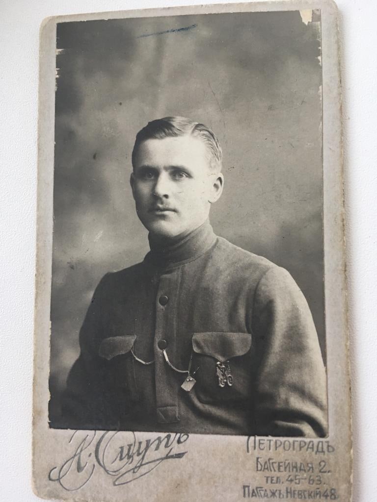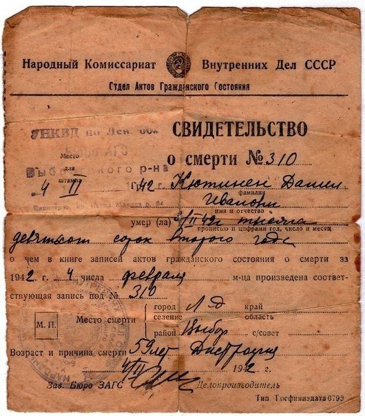 Текст Посмотрите в глаза этому человеку. Ингерманландец Даниил Кютинен (1883-1942) был пекарем в блокадном Ленинграде. Каждый день он выпекал хлеб для горожан. Ежедневная пайка становилась всё меньше, пока не скуксилась до 125 грамм. Но честный Кютинен так и не взял себе ни одной крошки. Восемьдесят лет назад, 3 февраля 1942 года, Даниил Иванович упал прямо на рабочем месте и больше уже не встал. Диагноз: дистрофия, умер от крайней степени истощения. #Ингерманландия #ВМВ #история #факты