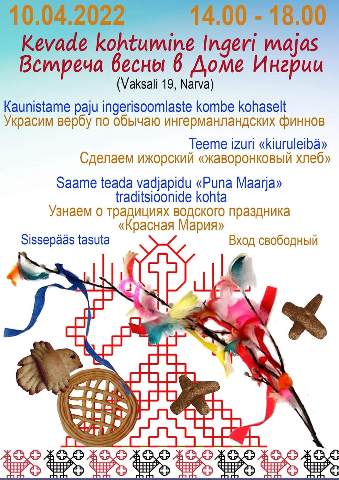 Текст Всех резидентов Евросоюза и гостей братской Эстонии 10 апреля (Вс) в 14:00 приглашаем в Дом Ингрии в Нарве! Здесь состоится Встреча весны, основанная на древних традициях инкери, ижор и вожан. Приходите, будет интересно! 💛❤️💙 #Ингерманландия #Inkerinmaa #Ingermanland