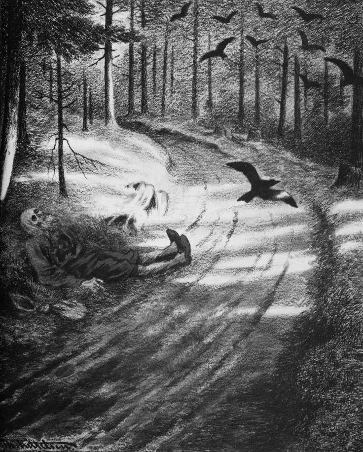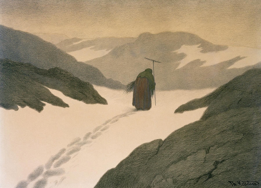 Текст 27 апреля — в этот день 165 лет назад родился выдающийся норвежский художник Теодор Киттельсен (Theodor Severin Kittelsen, 1857-1914). По случаю представляем вам одну из самых жутких его работ — серию иллюстраций "Чёрная смерть" (Svartedauen), посвящённую эпидемии чумы, уничтожившей половину населения Северной Европы в XIV в. Чуму Киттельсен изображал в виде зловещей чёрной старухи с граблями, собирающей по всему миру кровавую жатву. В 2022 году это по-прежнему весьма актуально, не правда ли? 💀 #Скандинавия #Киттельсен #искусство #даты