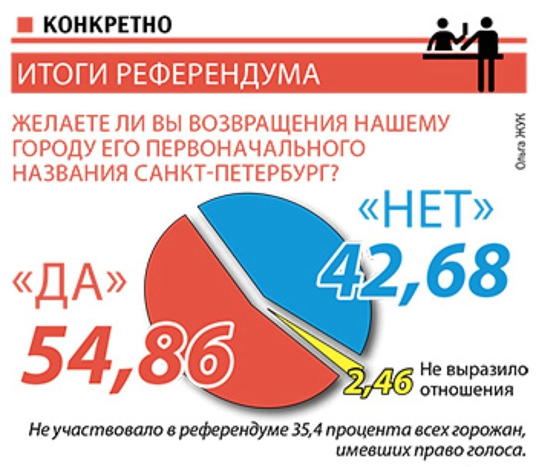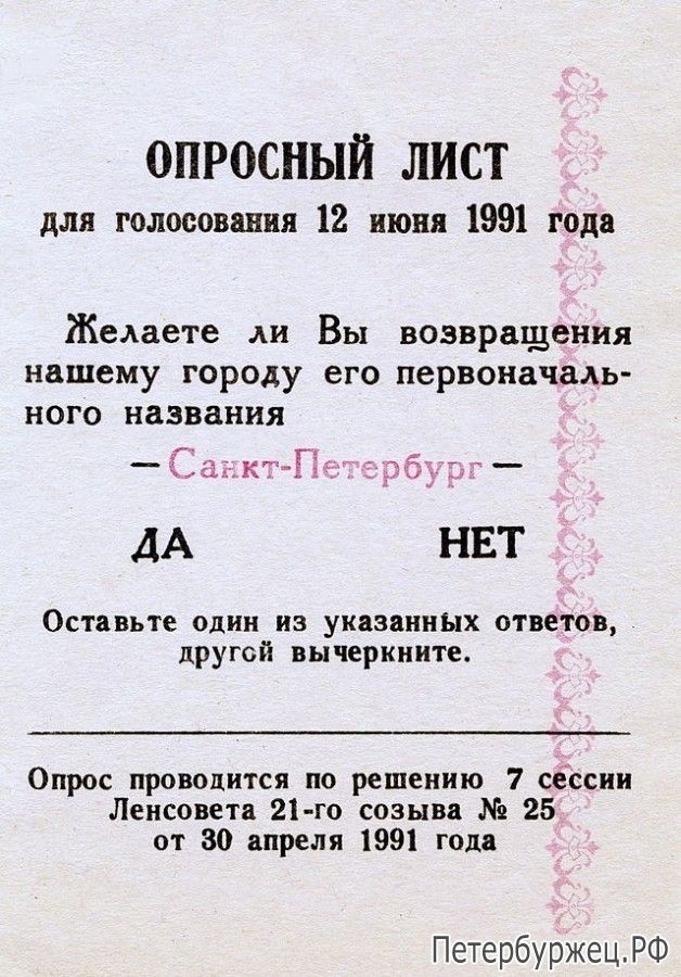 Текст 6 сентября — в этот день 32 года назад Санкт-Петербург официально вернул своё настоящее имя (1991). Ранее в ходе опроса 54,9% жителей города высказались за это решение (при 42,7% голосов "против" и явке в 64,7%). Напомним, в 1611-1703 гг. Город на Неве назывался Ниен, в 1703-1914 гг. — Санкт-Петербург, в 1914-1924 гг. — Петроград, в 1924-1991 гг. — Ленинград. Сейчас уже трудно себе представить, что бо́льшую часть ХХ века наш город был лишён своего названия. #Ингерманландия #Петербург #даты